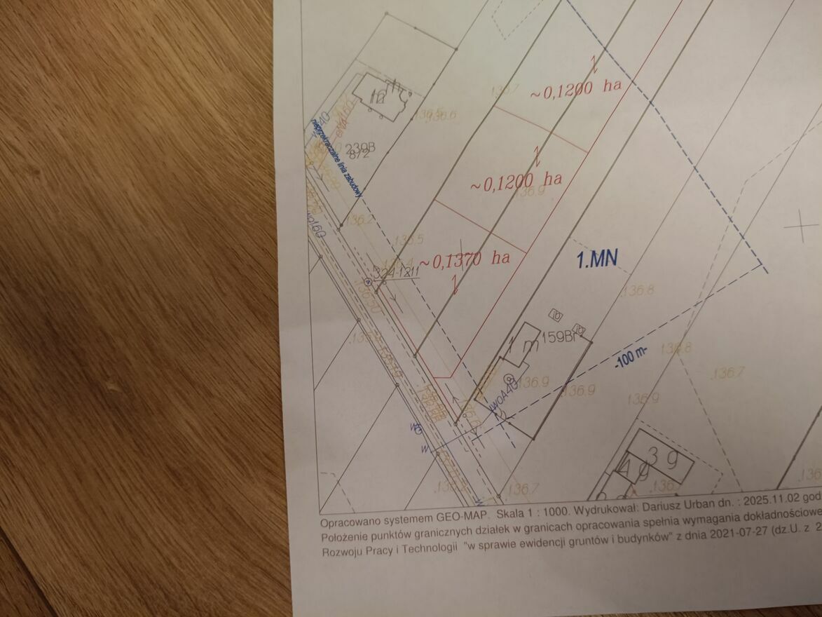 Działka budowlana o pow.1370m2, wydzielona z działki 10 i 11 kształt romba, wymiary 44,75m na 33,60 szerokość, teren płaski, nieogrodzona, dojazd drogą asfaltową i wewnętrzną, kanalizacjia w drodze prąd przy działce gaz.Dzialka w Parole gmina Nadarzyn, powiat Pruszkowski, mazowieckie.Piekna działka położona przy drodze gminnej.nieruchomość obieta NPZP w roku 2025.Przeznaczenie mieszkaniowe, wysokość zabudowy do budynku jednorodzinnego do 2,5 kondygnacji (dach spadzisty)lub do 1,5 kondygnacji (dach spadzisty).Na każdej działce obowiązuje co najmniej 50%powierzchni przyrodniczo -aktywnej.Minimalna powierzchnia przeznaczona na zabudowę jednorodzinną 1000 m.Ogloszenie bezpośrednio od sprzedawcy . Cena 300 zł za metr,do minimalnej negocjacji.Bezpośrednio.Sprawdź zainteresowanie tym ogłoszeniem